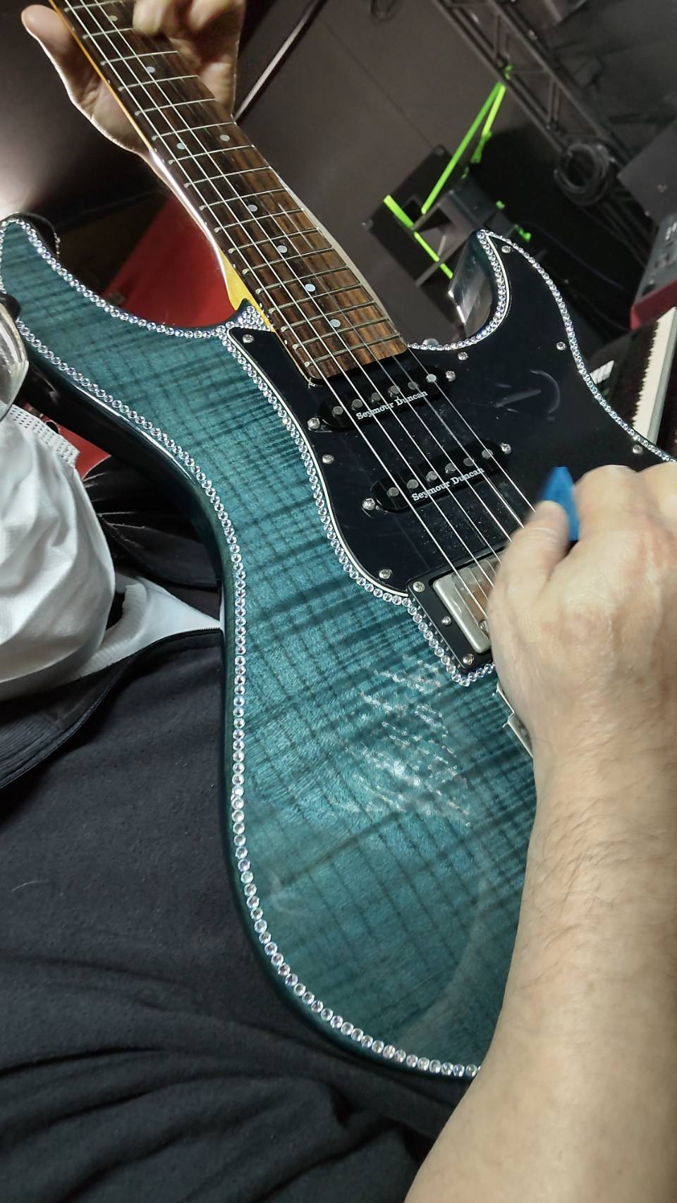 周りにダイヤモンドのような宝石をちりばめてくれました。もちろん、100均のシールですよ。でも、ステージでは光が反射してカッコイイです!しげさん、ありがとうー!!!